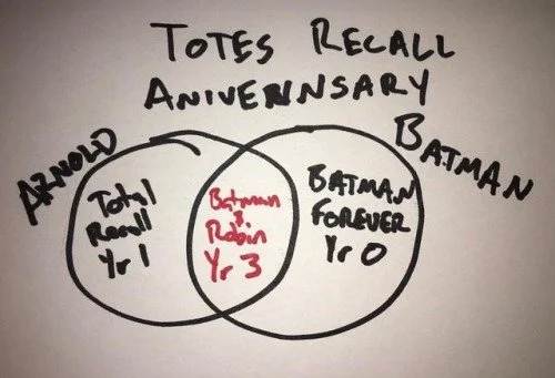 In celebration of our three-year anniversary, we recall the film that is in the center of our anni-venndiagram, Batman & Robin (1997). We remember enough to know that it is A) a Batman movie and B) stars Arnold Schwarzenegger. Plus, we discover our new favorite person, Joe Prado, captain of transportation.